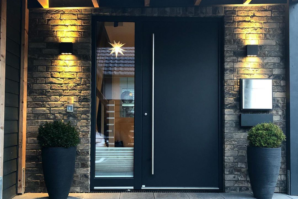 La porte Kömmerling 76 MD + ALU est idéale pour les projets architecturaux exigeants, la conception élégante du capotage en aluminium, étant mise en valeur à côté des avantages fonctionnels du PVC.